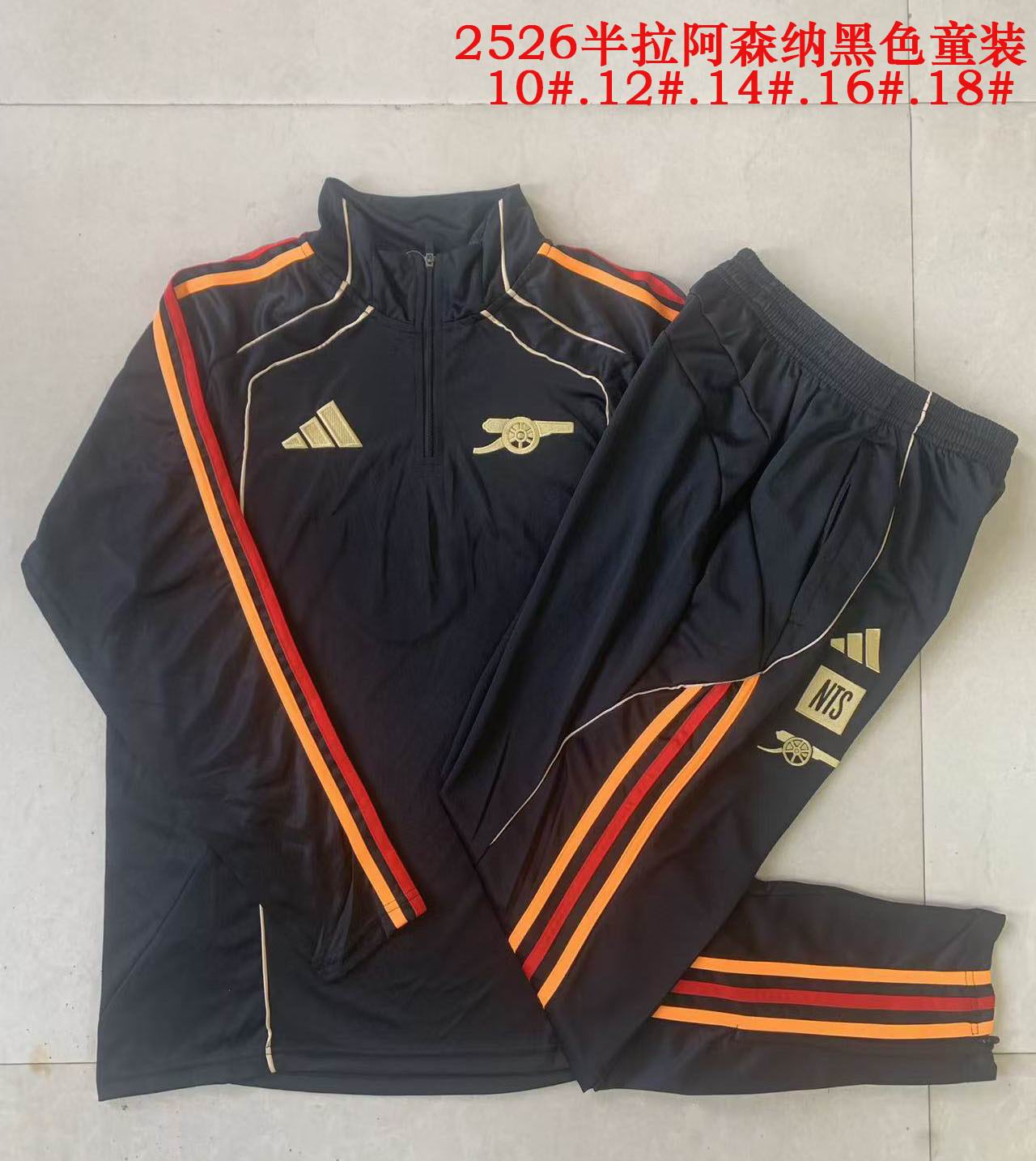 2025-2026 Arsenal club black kid Soccer uniforms with Long Trousers E25178
