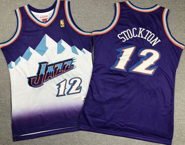 Youth Utah Jazz John Stockton #12 Purple throwback NBA Jersey-XD